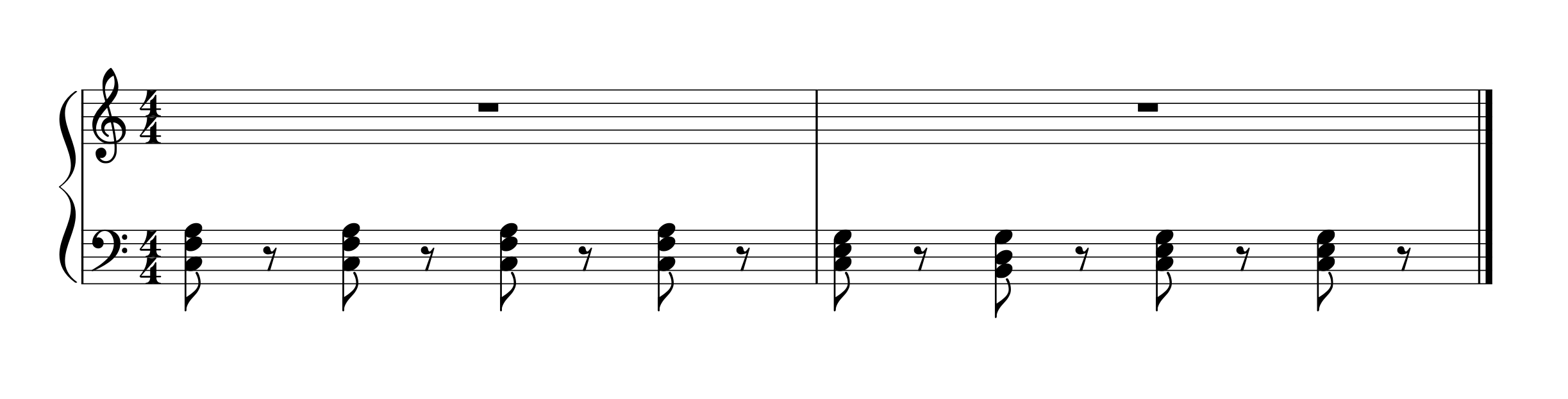 譜例1の全てのコードは3つの音で構成されていますから、右手の指も3本で足ります。